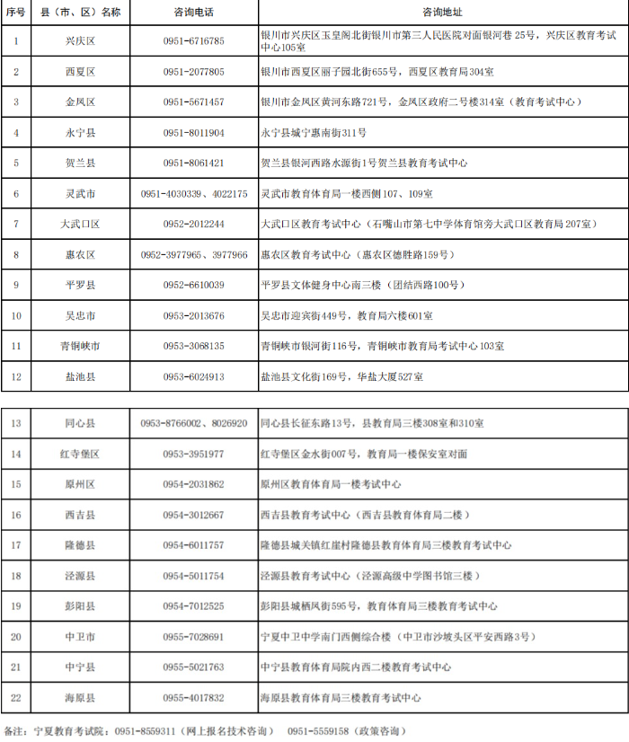 寧夏2025年成人高考報名各縣(市、區(qū))咨詢電話及地址